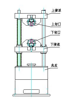 下橫梁升降電機經(jīng)減速器、鏈傳動機構(gòu)、絲杠副傳動,實現(xiàn)拉伸、壓縮空間的調(diào)整;注:絲杠不動,螺母旋轉(zhuǎn),確保設置在運轉(zhuǎn)中的幾何精度